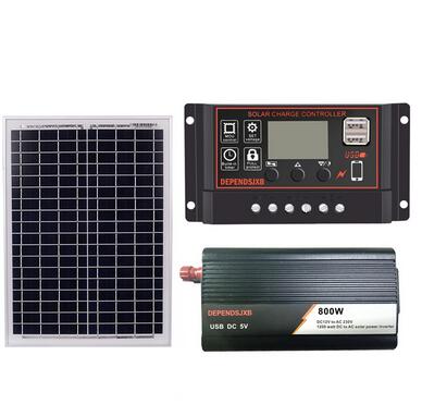 18V20W Solar Panel +12V 10/20/30/40/50A Controller + 800W Inverter Dc12V-Ac230V Solar Power Generation Kit, For Outdoor And Ho