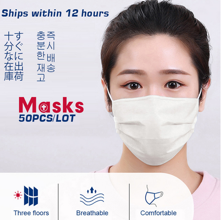 Advantages: ventilation, dust and filter bacteria Material:Non-woven fabric、Meltblown cloth Masks specification: 17x 9cm three layers Color: White,Blue Package include: 50 x Disposable Masks
