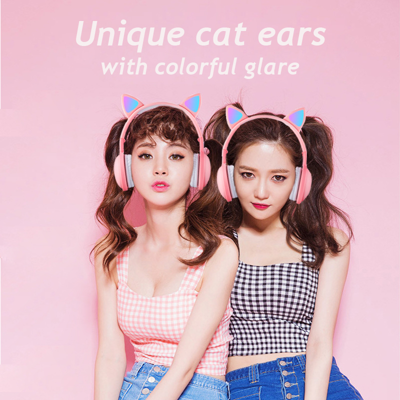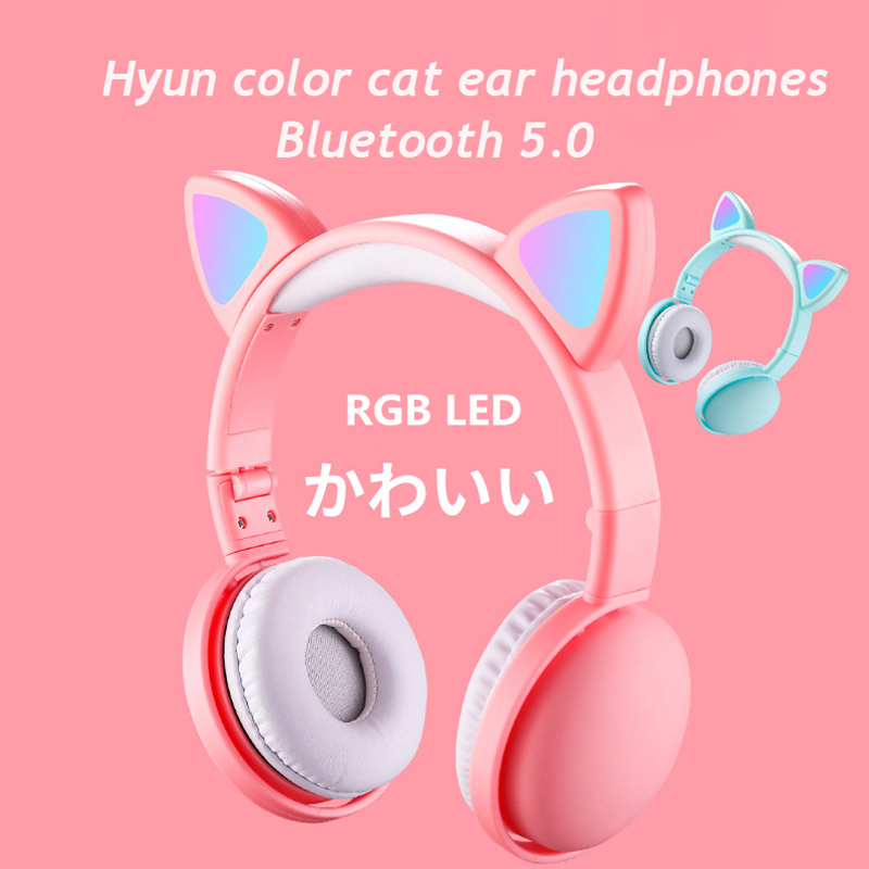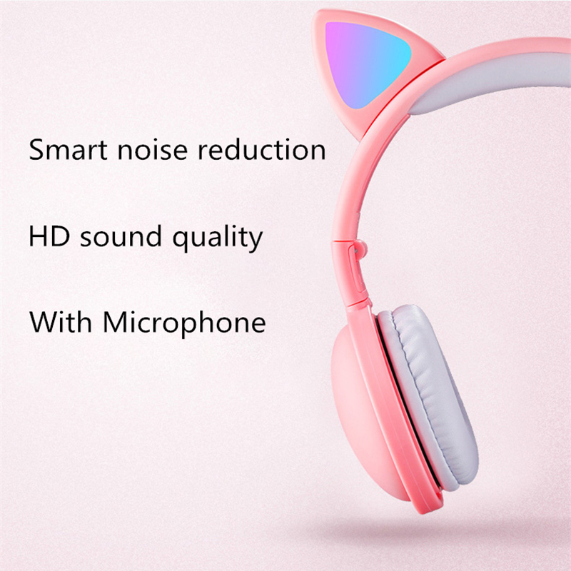 LED Cat Ear Headphones Noise Cancelling Bluetooth 5.0 Adults and Kids Headset Support TF Card FM Radio With Mic Wireless+Wired