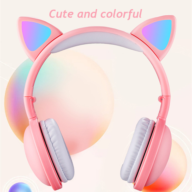 Kids Bluetooth 5.0 Headphone LED light Cat Ears Headset Wireless Earph