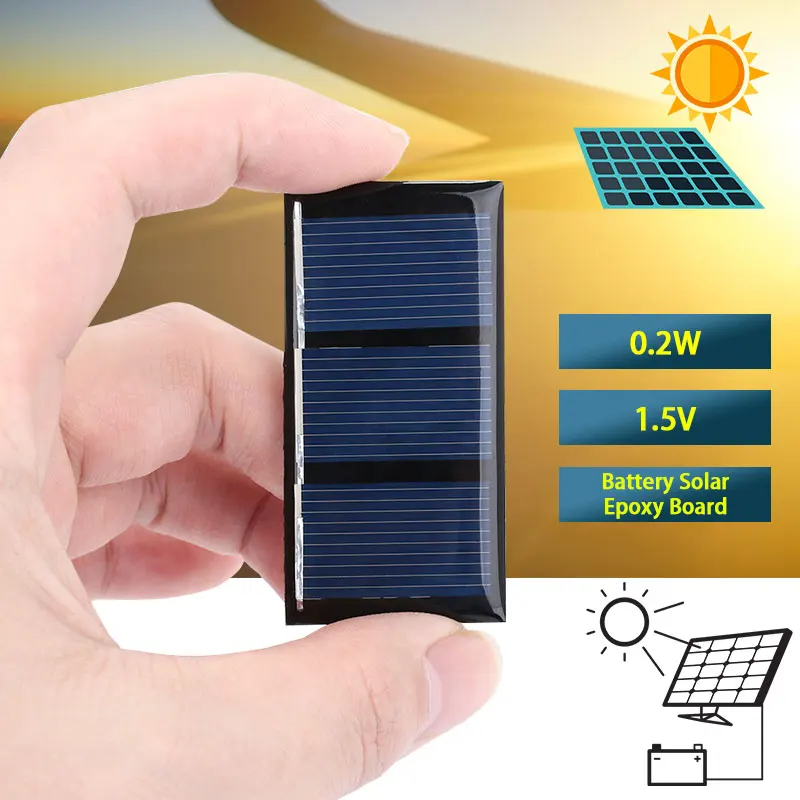 t is too capable to receive sunlight, convert solar energy into electricity, save energy, and be scientific and safe. 0.2W/0.65W/0.7W 1.5V Epoxy board with wire, suitable for your DIY. You need to make your own DYI to bring more fun to the production. The unique process makes the components beautiful and strong, resistant to wind and snow, and easy to install. Unique technology prevents freezing and deformation of water in the frame.