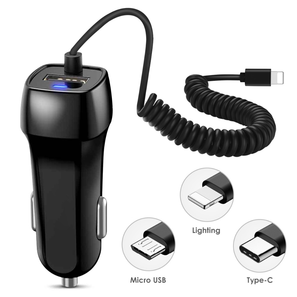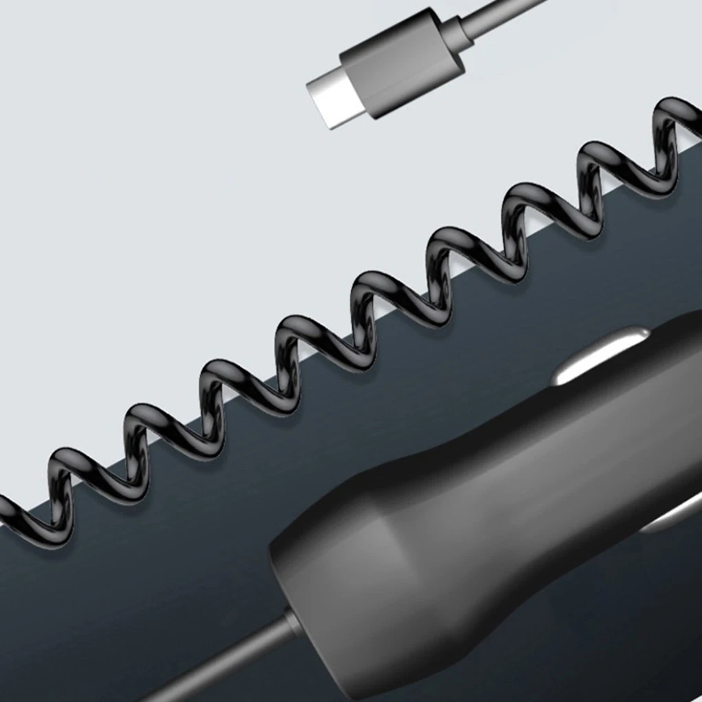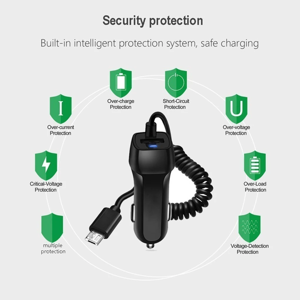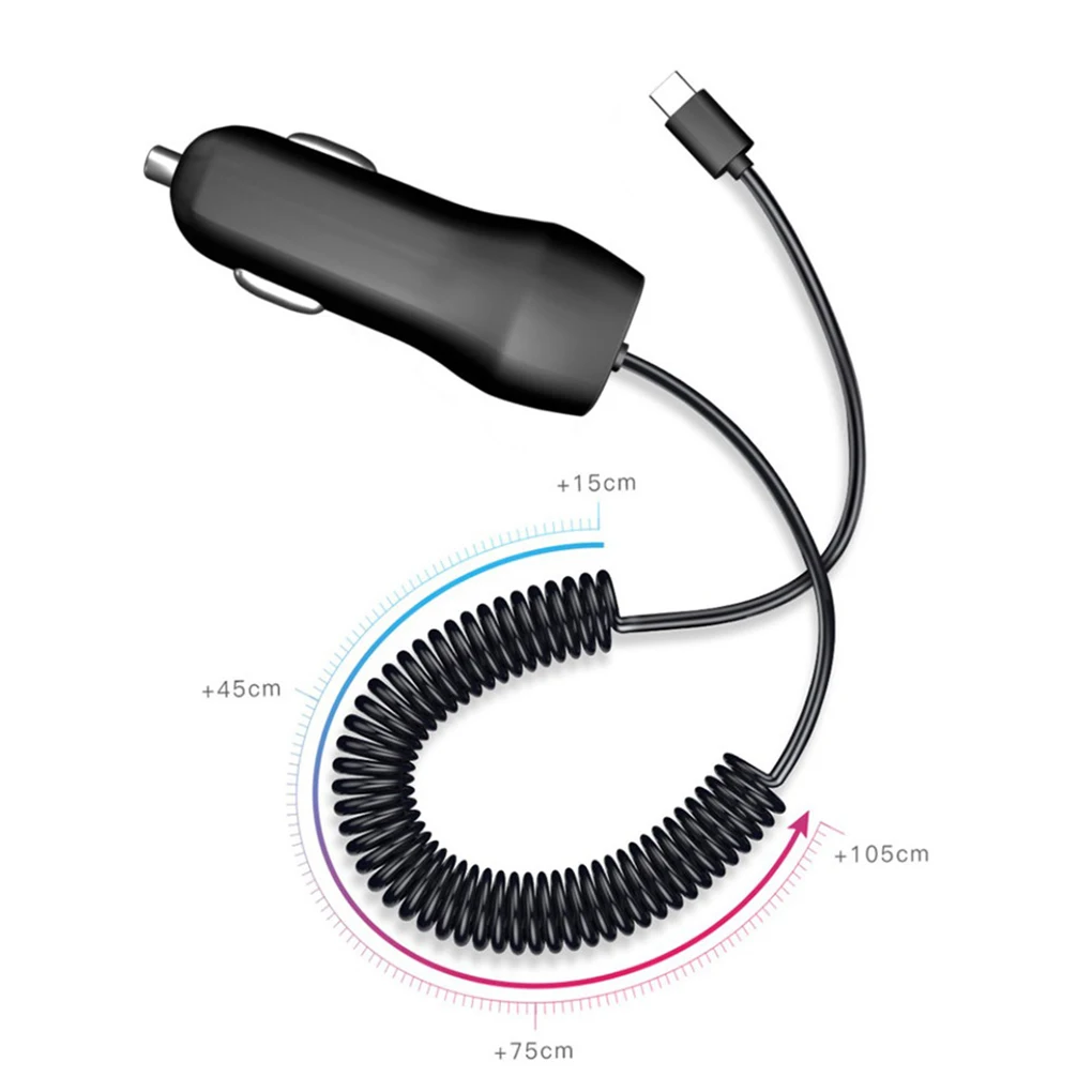 Designed with a spring cable,you can easily stretch it,so the people sit on back seat can charge the phone easily.This cigarette lighter phone charger can be powered by 12V to 24V and is fit for being plugged in most of car cigarette lighter socket.